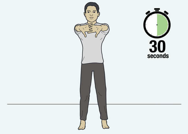 5. Repeat steps 1-4 but at step 4 touch your face with your hands instead of your arms.