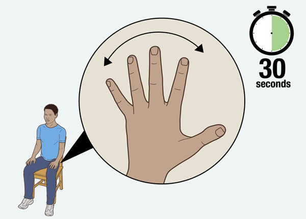 5. As you breathe in stretch your fingers apart as wide as possible, then as you breathe out, relax your fingers.
