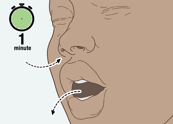 4. Now repeat the activity, but this time focus on breathing in through your nose and out through your mouth.