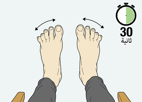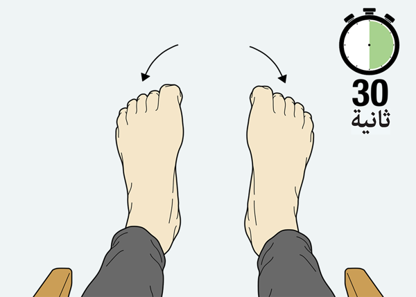 3. والآن قم بلف أصابع القدمين للأسفل وابقها ملتفة لمدة 30 ثانية.
