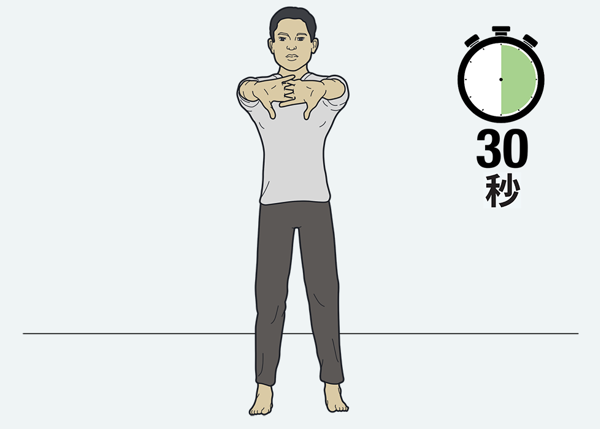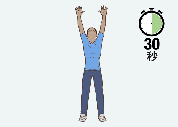 6.现在吸气的同时伸展手指和手臂,尽可能地伸展。
