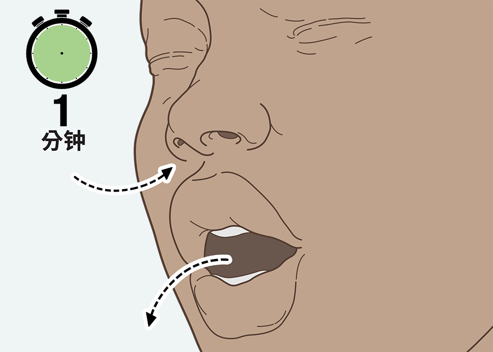 3.吸气时尽量张大嘴巴,然后呼气时放松嘴巴。