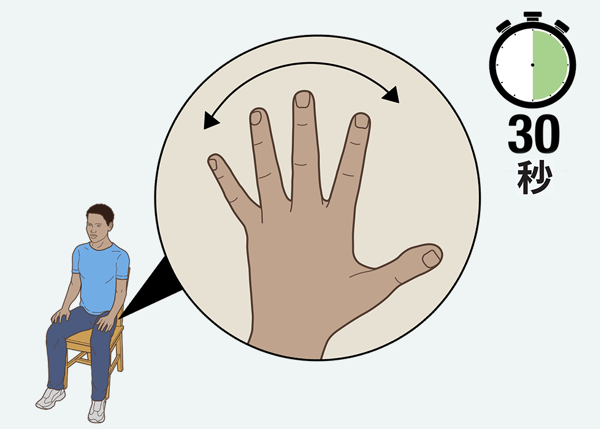 5.吸气时尽量将手指分开,然后呼气时放松手指。