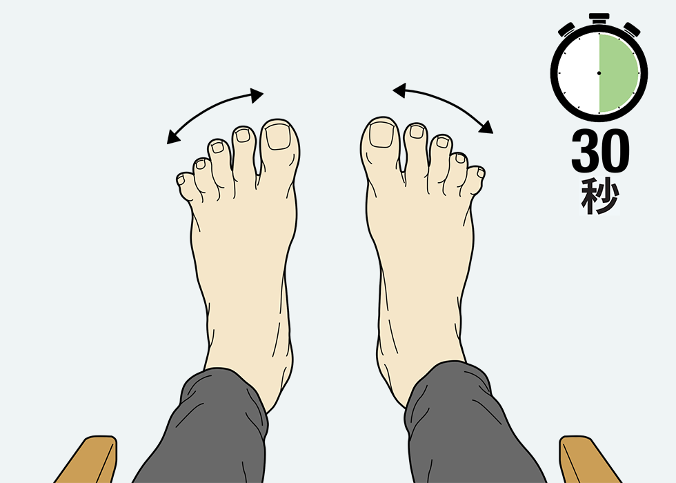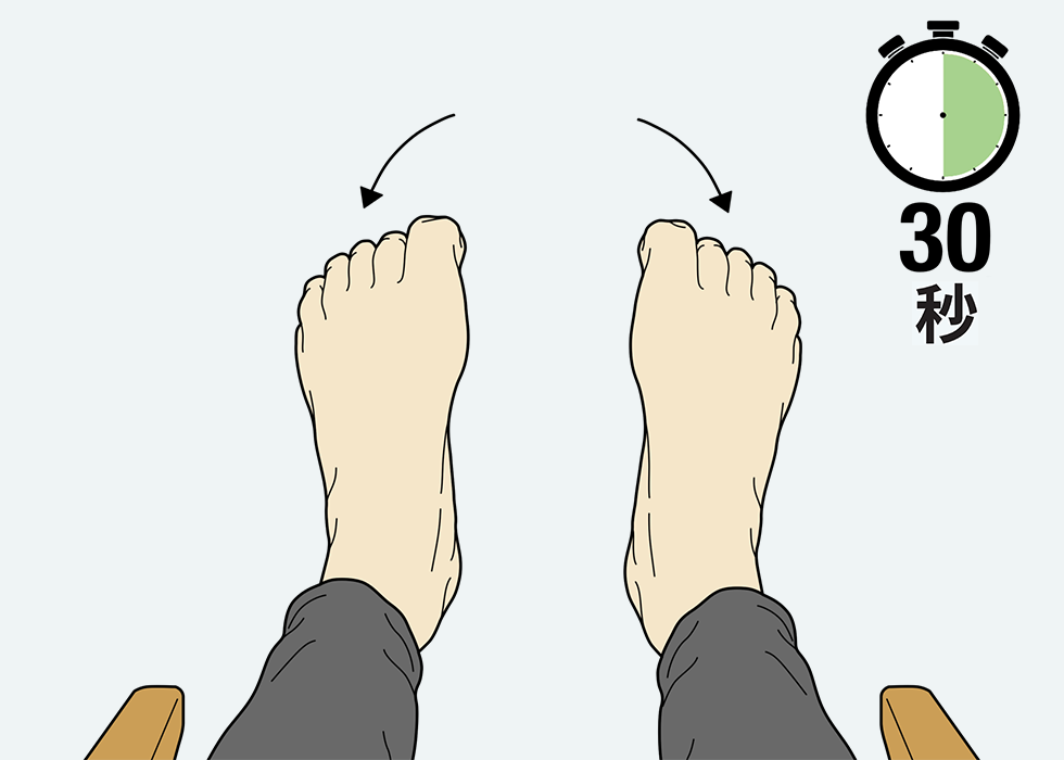 8.吸氣時向上彎曲腳趾讓腳部收緊,然後呼氣時放鬆腳部。