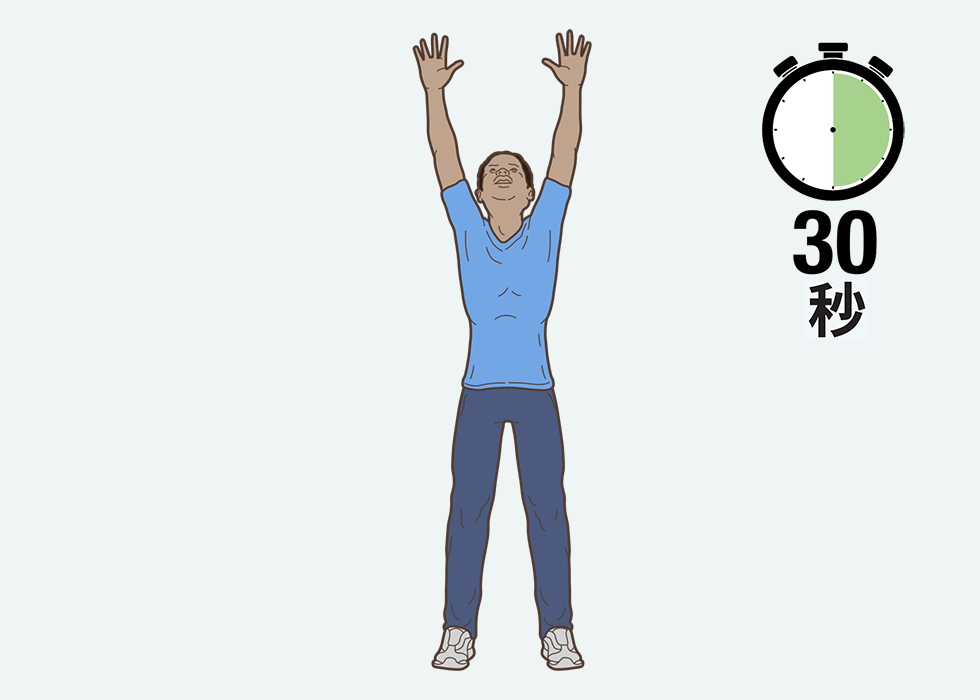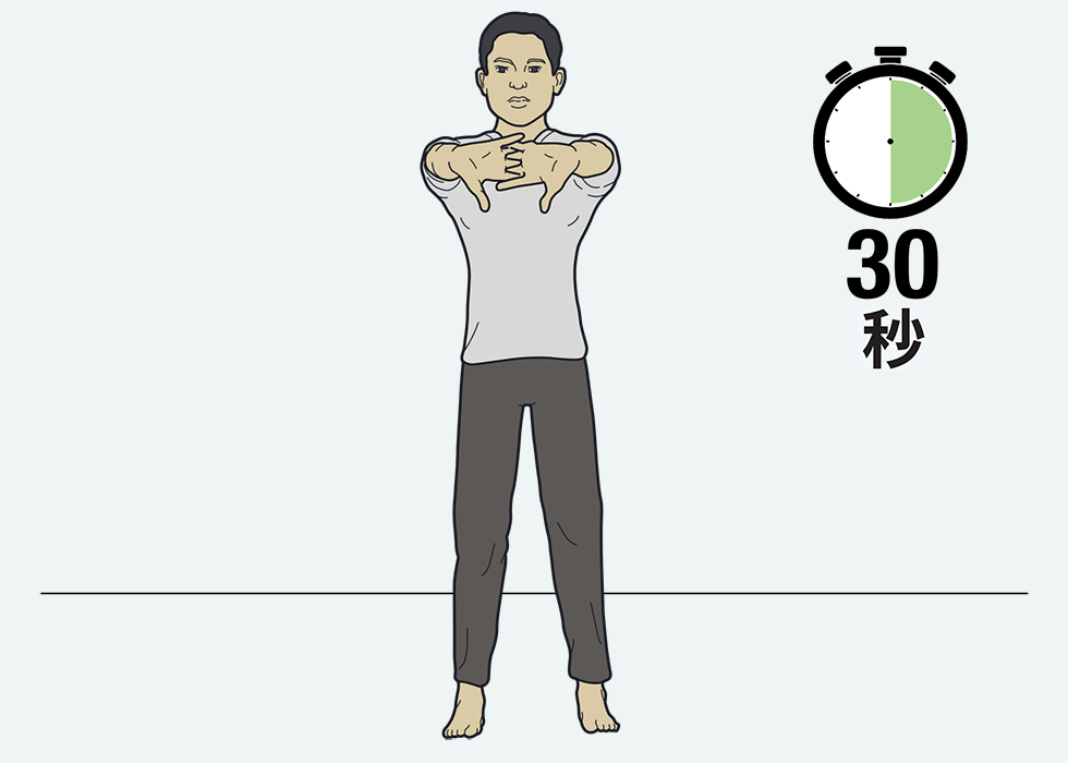 6. 現在吸氣的同時伸展手指和手臂,盡可能地伸展。