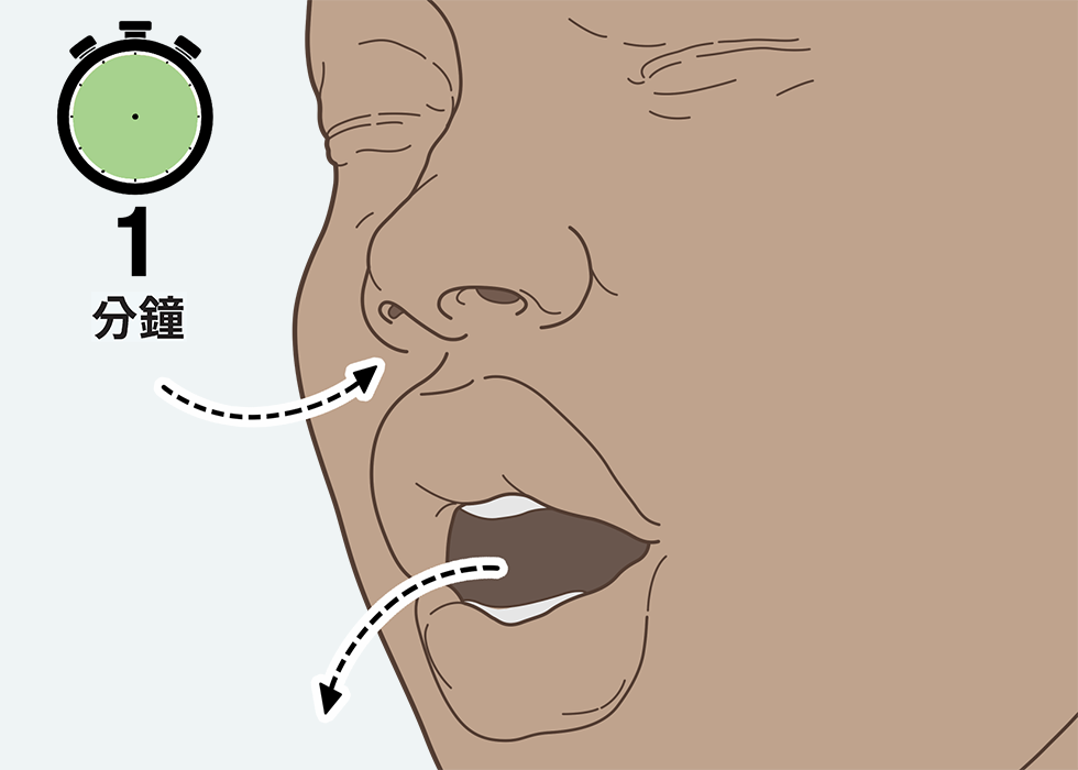 3.吸氣時儘量張大嘴巴,然後呼氣時放鬆嘴巴。