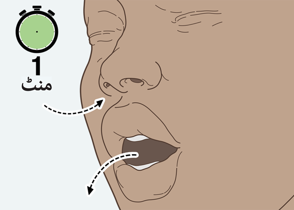 4. ایک منٹ تک سانس کو اندر اور باہر کرنے کی اس مشق کوکرتے رہیں۔