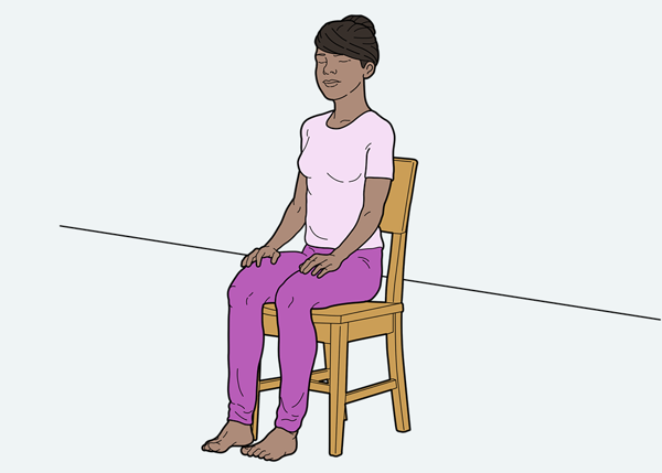 1. کرسی پر یا فرش پر،آرام سے بیٹھ کر، اپنی آنکھیں بند کریں۔