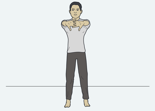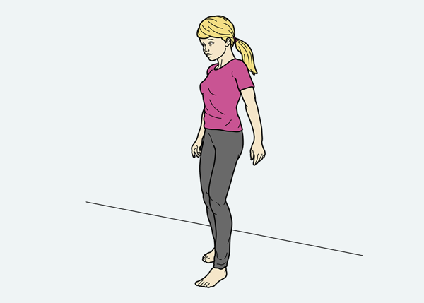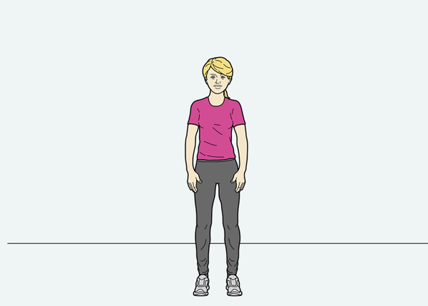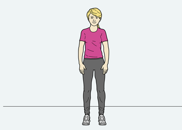 1. اپنے ہاتھوں کو اپنے اطراف میں رکھتے ہوئے کھڑے ہونے کی پوزیشن میں شروع کریں۔