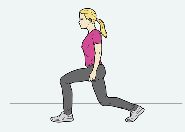 1. کھڑے ہو کر، ایک پاؤں کو دوسرے سےآگےکرکے رکھیں اور دونوں پاؤں کا رخ آگے کی طرف ہو اور ٹانگیں ایک دوسرےسے کولہے کی چوڑائی کے فاصلے پرہوں، دونوں پاؤں فرش پر چپٹے ہوں۔