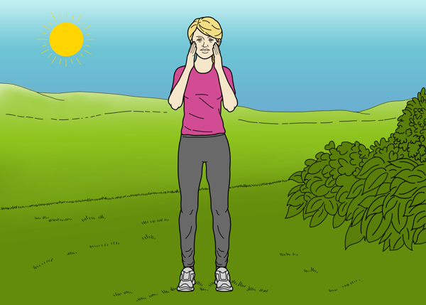 3. ایک منٹ کے بعد رکیں اور اپنے ہاتھوں سے اپنے چہرے کو چھوئیں۔