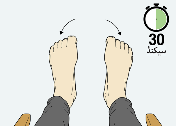 3. اب اپنے پاؤں کی انگلیوں کو نیچے موڑ کررکھیں اور انہیں 30 سیکنڈ تک مڑے ہوئے رکھیں۔