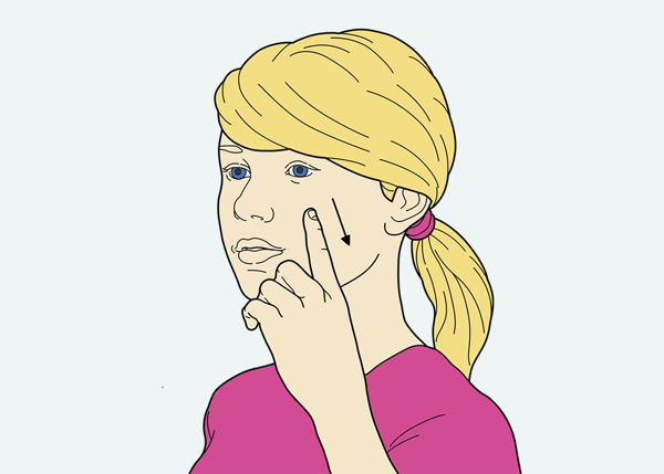 4. اب اپنی انگلی کو مضبوطی سے اپنے گال پر اور پھر اپنے ہاتھ کے پچھلے حصے پر مضبوطی سے گھسیٹیں۔