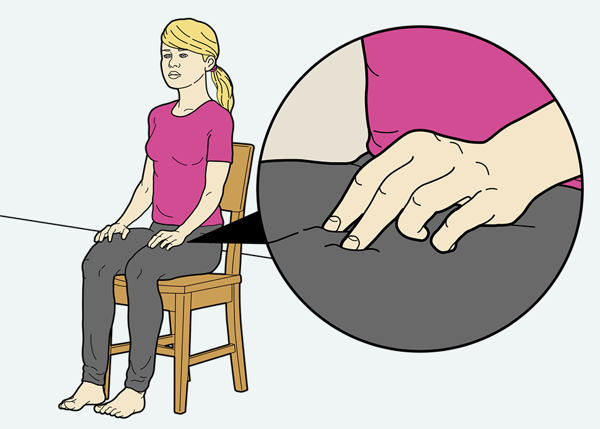 1. کرسی پر یا فرش پر بیٹھیں، اور اپنی دو انگلیاں ٹانگ کے اوپر رکھیں۔