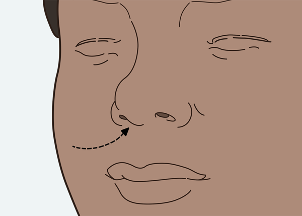 2. ناک کے ذریعے سانس لیتا ہواشخص۔ ایک انگلی کیساتھ، اپنی گال کو تھپتپھائیں۔