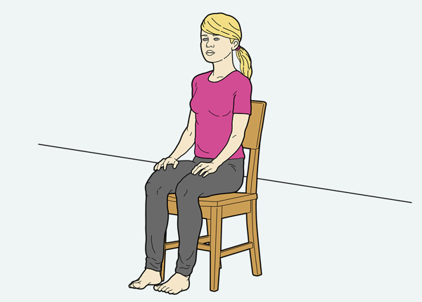 1. بیٹھ کر، اپنے پیروں کو فرش پر چپٹا کرکے رکھیں۔